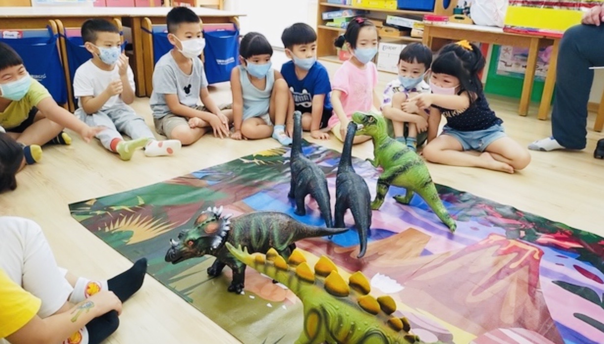 全校皆以美語教學為主,融合體能、藝術、健康、音樂,提供一流的中外籍師資,完整的教學課程,尤其在大班課程中,我們帶領孩子進入閱讀的世界,讓孩子透過故事去接觸英文。